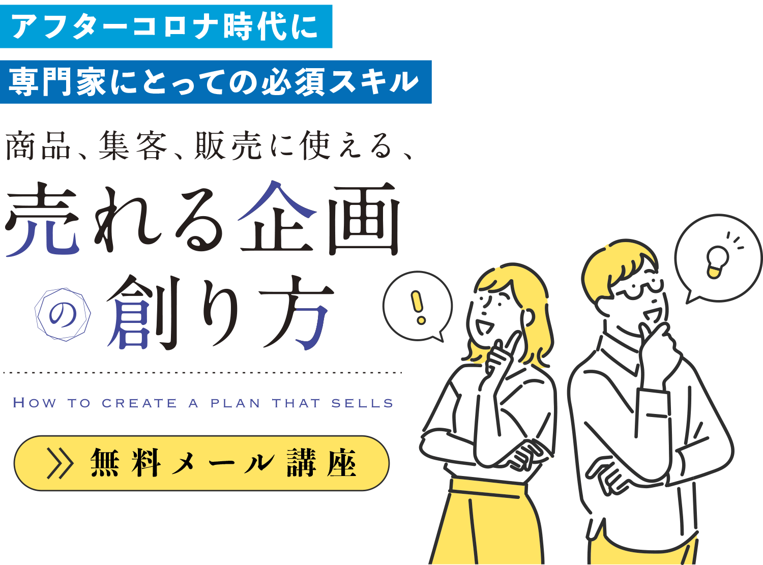 | 売れる企画の創り方 | 売れる企画を創るにあたって、重要な3つの考え方を、メールや動画を使ってお伝えします。 | 無料 |